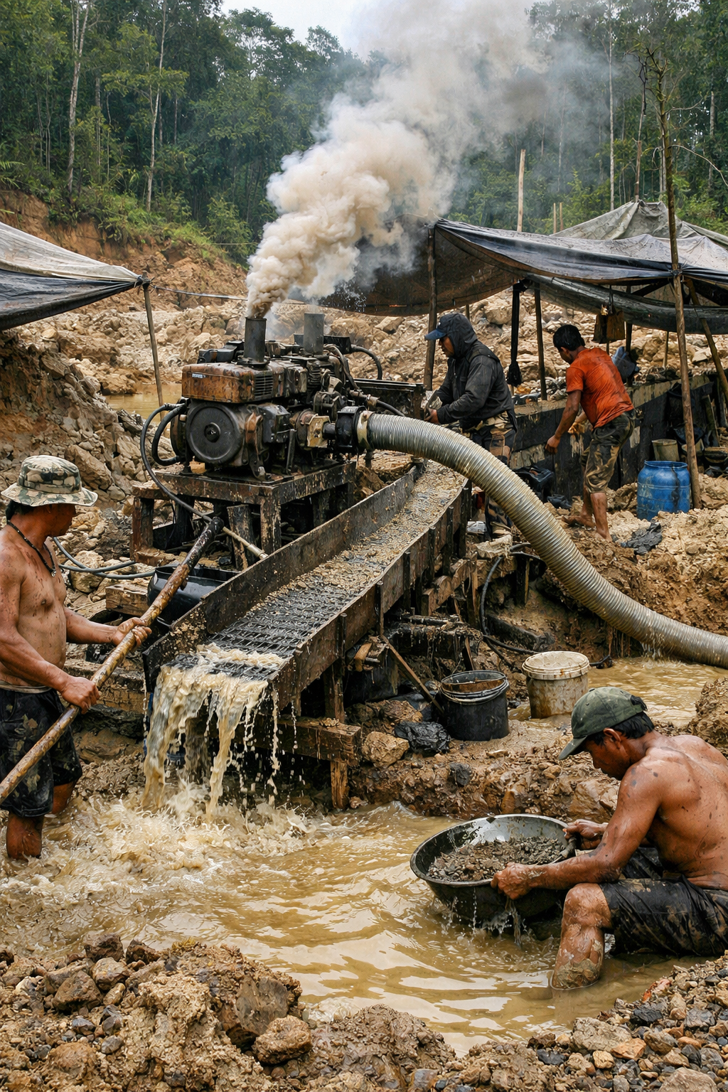 Lokasi terjadinya musibah itu diketahui memang menjadi salah satu lokasi aktifitas tambang emas ilegal. Para pelaku tambang menggunakan mesin dompeng untuk mengambil material pasir yang mengandung butiran emas.