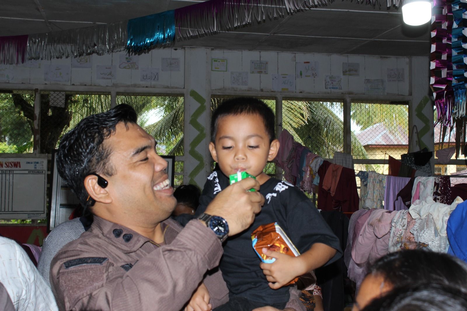 Kejari Madina memberikan perhatian khusus pada kelompok rentan di pengungsian, terutama anak-anak. “Untuk anak-anak kita beri perhatian khusus, ada susu dan makanan biskuit serta kita sempatkan bermain bersama mereka,” tambahnya.