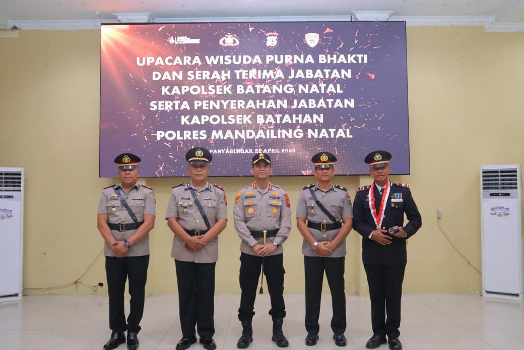MNC Trijaya Mandailing Natal (22/04) (Panyabungan) – Kepolisian Resor (Polres) Mandailing Natal menggelar upacara Wisuda Purna Bakti, serah terima jabatan (sertijab), serta penyerahan jabatan di Aula Pesat Gatra Polres Madina, Rabu (22/4/2026) pagi. Kegiatan ini menjadi bagian dari pembinaan organisasi sekaligus bentuk penghargaan atas pengabdian personel Polri.